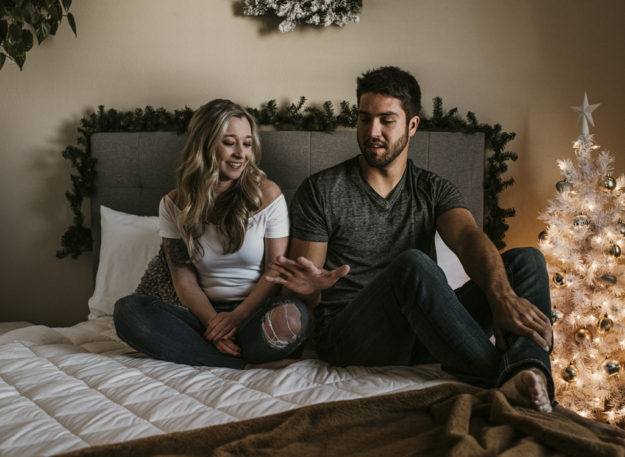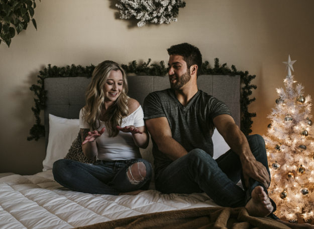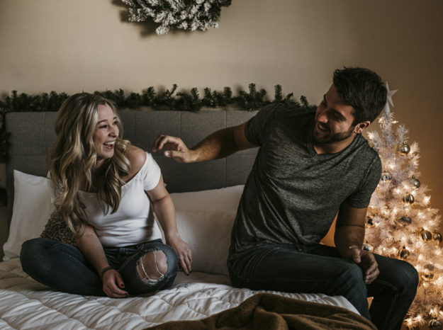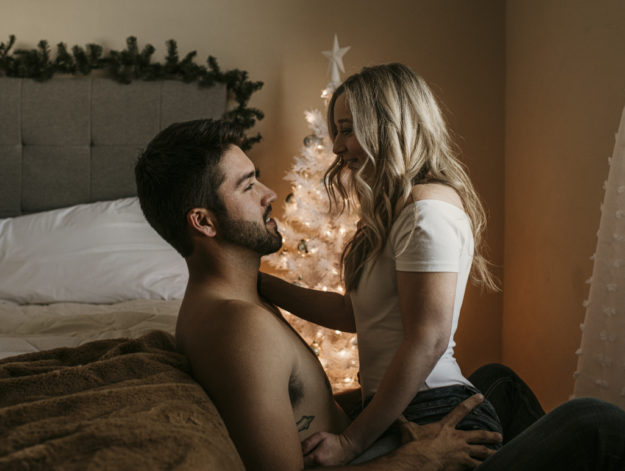 I have been DYING to get these images shared with all of you! I have been wanting to put together a stranger session for several months now and I finally came across who couldn’t have been more perfect for my idea and who I just knew would have some great chemistry! First off, Kelsey and Derek are two of the most jaw dropping gorgeous people on this planet and secondly I have photographed them each before so I knew they would be a tad more comfortable with some of my steamy plans. I had them answer a few questions about themselves before the shoot that I sent to each other so they could get to know one another before just a little. However, just a few days before our session I let them exchange numbers with several rules in place not to send photos or give away too much before the shoot! Let me tell you…Kelsey was so excited to get his digits! Derek was so adorably giggly and nervous to meet this mega hot mystery woman. I think his face says it all when they finally got to turn around and meet! Kelsey was in shock of how tall and huge Derek’s hands were compared to her own and the instant hugs were so adorable! But the best reaction was Kelsey when I told Derek it was time to take his shirt off and start getting steamy! Her giggles were out of this world adorable! The Chemistry between these two strangers was out of this world fire! So much that there may or may not have been a little kiss sneaked! I am so beyond in LOVE with how my first ever stranger/ couples boudoir shoot turned out. Kelsey and Derek completely rocked this shoot and I swear they would make some amazing models! Fingers crossed to more amazing stranger sessions!