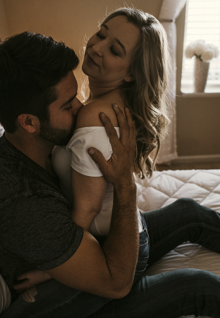 I have been DYING to get these images shared with all of you! I have been wanting to put together a stranger session for several months now and I finally came across who couldn’t have been more perfect for my idea and who I just knew would have some great chemistry! First off, Kelsey and Derek are two of the most jaw dropping gorgeous people on this planet and secondly I have photographed them each before so I knew they would be a tad more comfortable with some of my steamy plans. I had them answer a few questions about themselves before the shoot that I sent to each other so they could get to know one another before just a little. However, just a few days before our session I let them exchange numbers with several rules in place not to send photos or give away too much before the shoot! Let me tell you…Kelsey was so excited to get his digits! Derek was so adorably giggly and nervous to meet this mega hot mystery woman. I think his face says it all when they finally got to turn around and meet! Kelsey was in shock of how tall and huge Derek’s hands were compared to her own and the instant hugs were so adorable! But the best reaction was Kelsey when I told Derek it was time to take his shirt off and start getting steamy! Her giggles were out of this world adorable! The Chemistry between these two strangers was out of this world fire! So much that there may or may not have been a little kiss sneaked! I am so beyond in LOVE with how my first ever stranger/ couples boudoir shoot turned out. Kelsey and Derek completely rocked this shoot and I swear they would make some amazing models! Fingers crossed to more amazing stranger sessions!